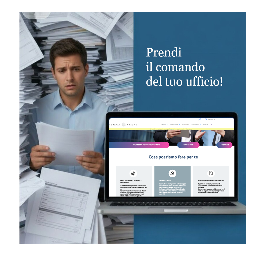 Dopo l’acquisto si riceve una mail con il link per la creazione dell’utenza sulla piattaforma antiriciclaggio, dopo l’attivazione si possono caricare le pratiche.