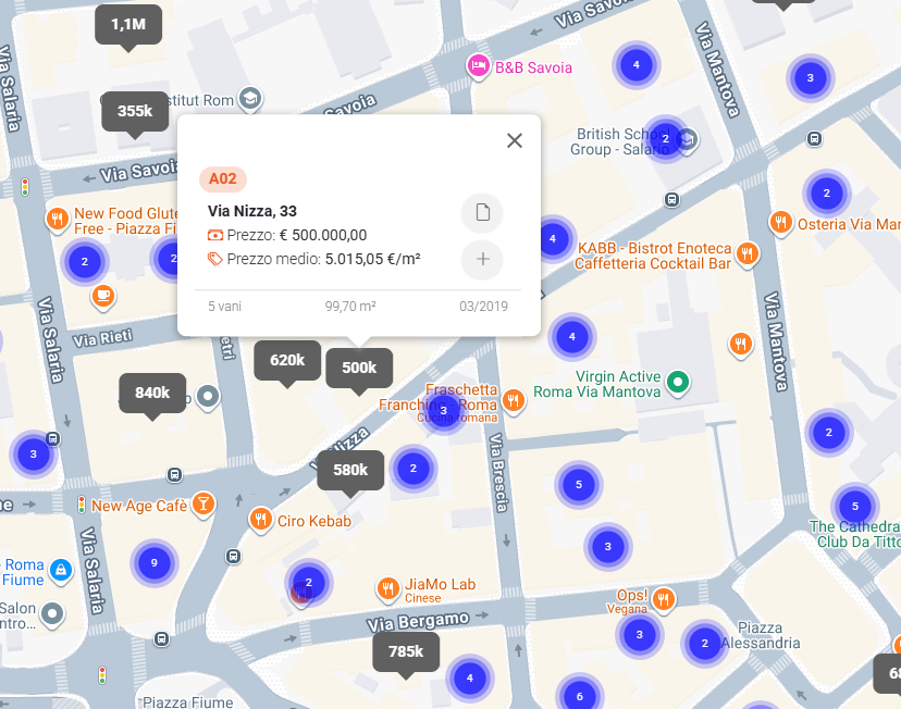 È possibile individuare rapidamente prezzi di compravendite georeferenziate ed altre informazioni quali comune, indirizzo, anno di vendita, mese di vendita, quota trasferita, consistenza, categoria catastale, zona OMI; inoltre, con il livello della “mappa catastale” è possibile ricavare semplicemente alcuni elementi fondamentali come il mappale e il foglio catastale di un immobile specifico.